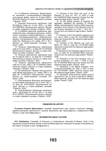 2. Саленко А.В. Свобода мирных собраний: “детские митинги” и “взрослые санкции” // Журнал российского права. 2019. № 8. С. 48-61. EDN: FYRBPW