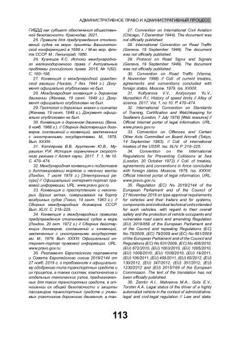 30. Конвенция о дорожном движении (Вена, 8 нояб. 1968 г.). // Сборник действующих договоров, соглашений и конвенций, заключенных с иностранными государствами. М., 1979. Вып. XXXIII.