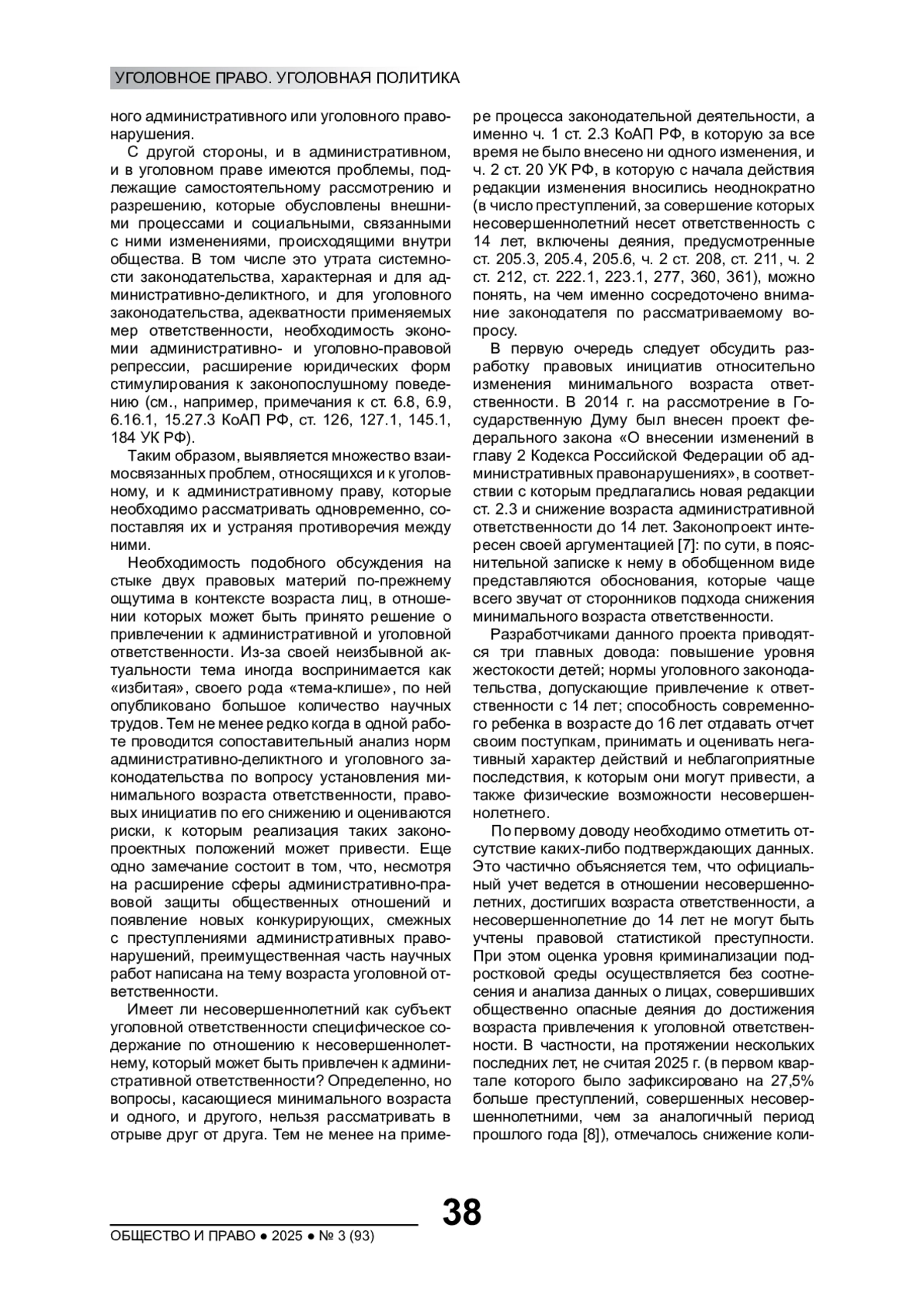 13. Бычкова А.М. Законопроект о снижении возраста уголовной ответственности до двенадцати лет в свете анализа реальной общественной опасности деяний малолетних // Известия Иркутской государственной экономической академии. 2012. № 2.