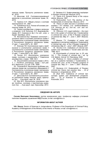 20. Плохова В.И. Некоторые проблемы уголовного права как системного образования // Системность в уголовном праве: материалы II Российского конгресса уголовного права, 31 мая - 1 июня 2007 г. М., 2007.