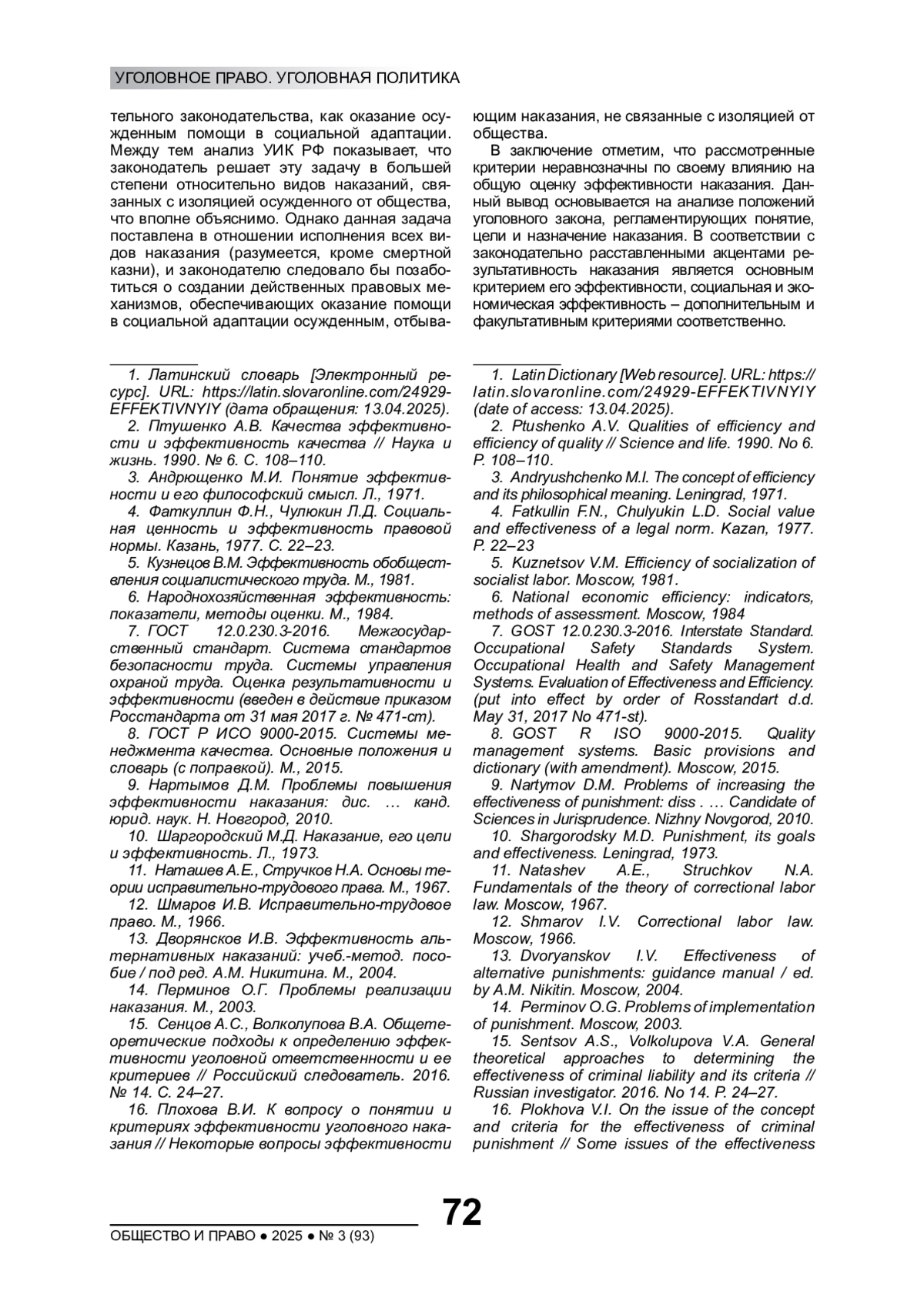 16. Плохова В.И. К вопросу о понятии и критериях эффективности уголовного наказания // Некоторые вопросы эффективности уголовного законодательства. Свердловск, 1976. Вып. 49. С. 14-15.