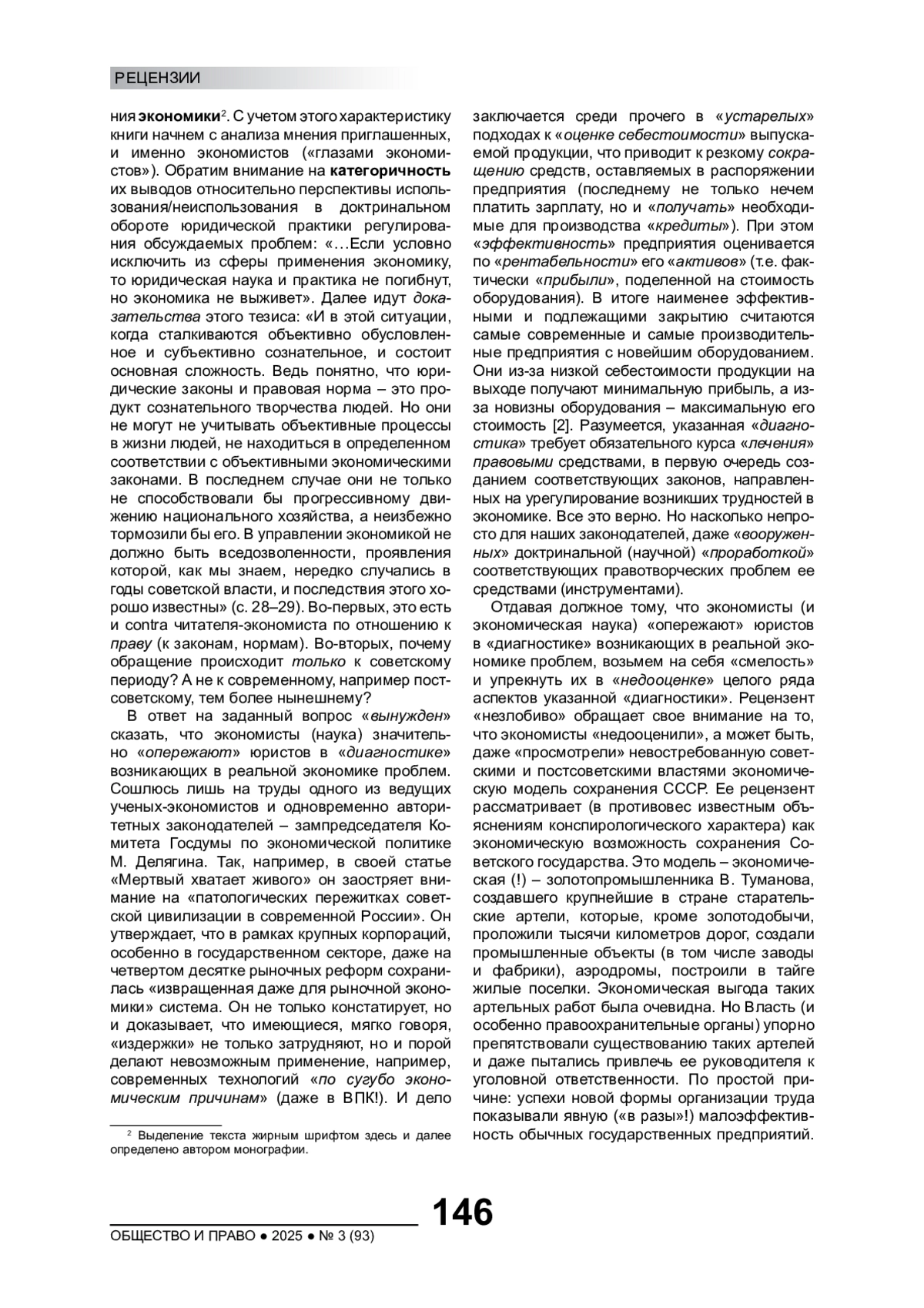 Авторскому тексту1 предшествует предисловие, подготовленное «глазами» правоведа (В. В. Архипова), экономиния экономики2. С учетом этого характеристику книги начнем с анализа мнения приглашенных, и именно экономистов («глазами экономистов»). Обратим внимание на категоричность их выводов относительно перспективы использования/неиспользования в доктринальном обороте юридической практики регулирования обсуждаемых проблем: «… Если условно исключить из сферы применения экономику, то юридическая наука и практика не погибнут, но экономика не выживет». Далее идут доказательства этого тезиса: «И в этой ситуации, когда сталкиваются объективно обусловленное и субъективно сознательное, и состоит основная сложность