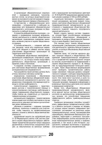 Анализируются вопросы организации участия граждан в обеспечении общественного порядка, формулируются предложения по совершенствованию исследуемого вида деятельности