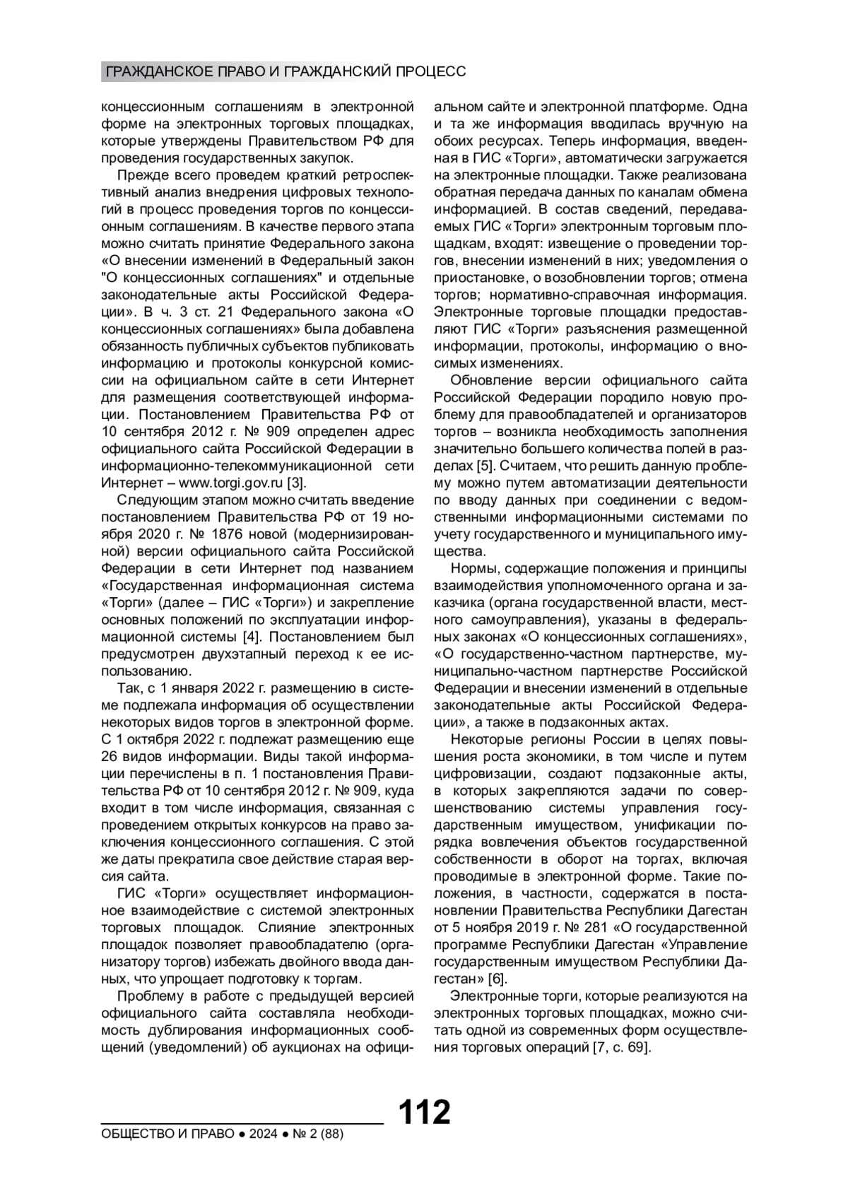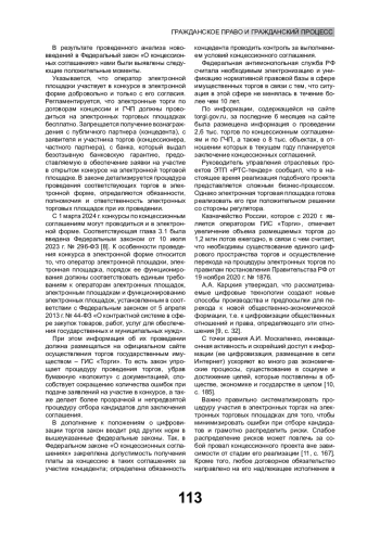 Статья посвящена исследованию законодательных норм о проведении торгов по концессионным соглашениям в электронной форме на электронных торговых площадках и их реализации на практике. В работе проведен анализ изменений, внесенных в Федеральный закон от 21 июля 2005 г. No 115-ФЗ «О концессионных соглашениях», рассмотрена история проведения конкурсов по концессионным соглашениям в электронной форме. По итогам исследования раскрыты преимущества и возможные сложности проведения торгов в форме конкурса по концессионным соглашениям в электронной форме на электронных торговых площадках