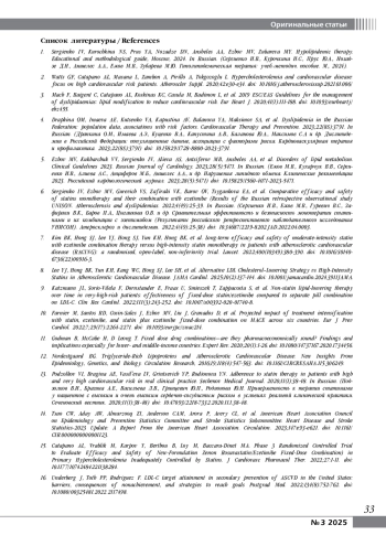 Сергиенко ИВ, Курочкина НС, Прус Ю.А, Нозадзе Д.Н., Аншелес А.А., Ежов М.В, Зубарева М.Ю. Гиполипидемическая терапия: учеб.-методич. пособие. М, 2024).