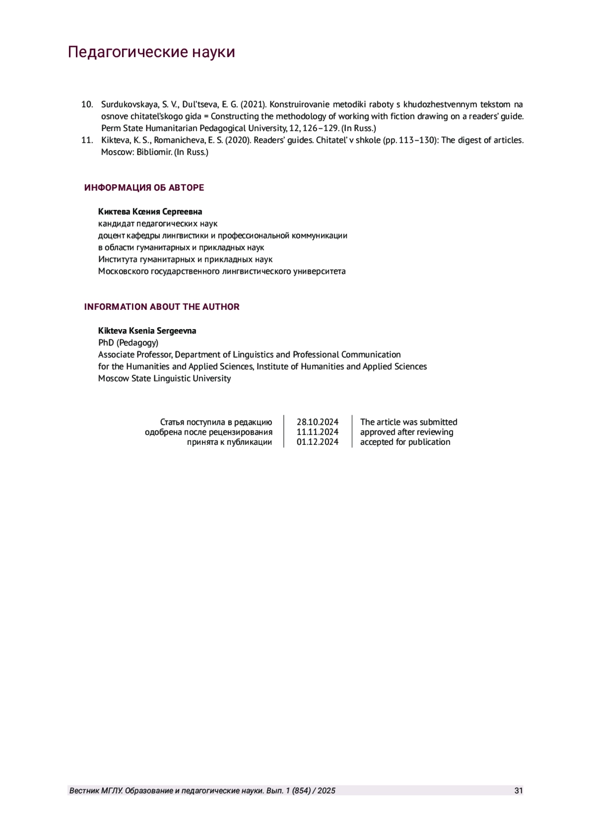 11. Киктева К. С., Романичева Е. С. Гайды по книгам // Читатель в школе: сборник статей / под ред. Е. А. Асоновой, Е. С. Романичевой. М.: Библиомир, 2020. С. 113-130. EDN: NDHPFE