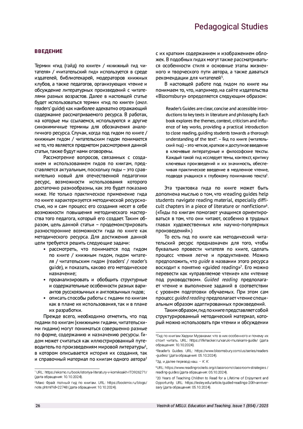 В статье рассматриваются различные англоязычные и русскоязычные гиды по книгам (среди которых как художественные, так и научно-популярные произведения), выявляется общее и различное в их структуре и содержании. Анализируется опыт разработки гидов по книгам и приводится перечень умений, на развитие которых направлена деятельность студентов педагогической магистратуры. Они разрабатывают собственные гиды по книгам в соответствии с предложенной моделью.