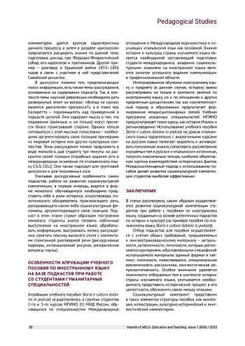 Журнал: ВЕСТНИК МОСКОВСКОГО ГОСУДАРСТВЕННОГО ЛИНГВИСТИЧЕСКОГО УНИВЕРСИТЕТА. ОБРАЗОВАНИЕ И ПЕДАГОГИЧЕСКИЕ НАУКИ