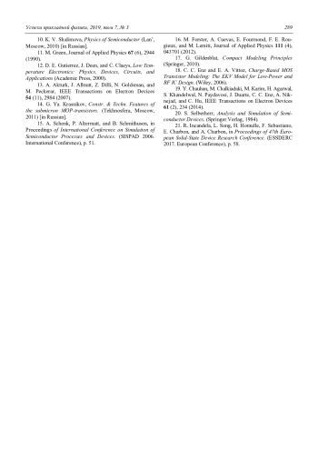6. Incandela R., Song L., Homulle H., Charbon E., Vladimirescu A., Sebastiano F. // IEEE Journal of the Electron Devices Society. 2018. Vol. 6. P. 996.