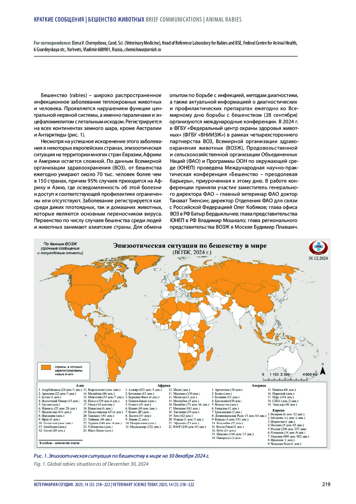 ЧВАЛА И. А., ЧЕРНЫШОВА Е. В., БЕЛЯКОВА Т. М., МЕТЛИН А. Е. О РЕАЛИЗАЦИИ КОМПЛЕКСА СОВМЕСТНЫХ ДЕЙСТВИЙ ГОСУДАРСТВ – УЧАСТНИКОВ СНГ ПО ПРОФИЛАКТИКЕ И БОРЬБЕ С БЕШЕНСТВОМ // ВЕТЕРИНАРИЯ СЕГОДНЯ. 2025. № 3, ТОМ 14