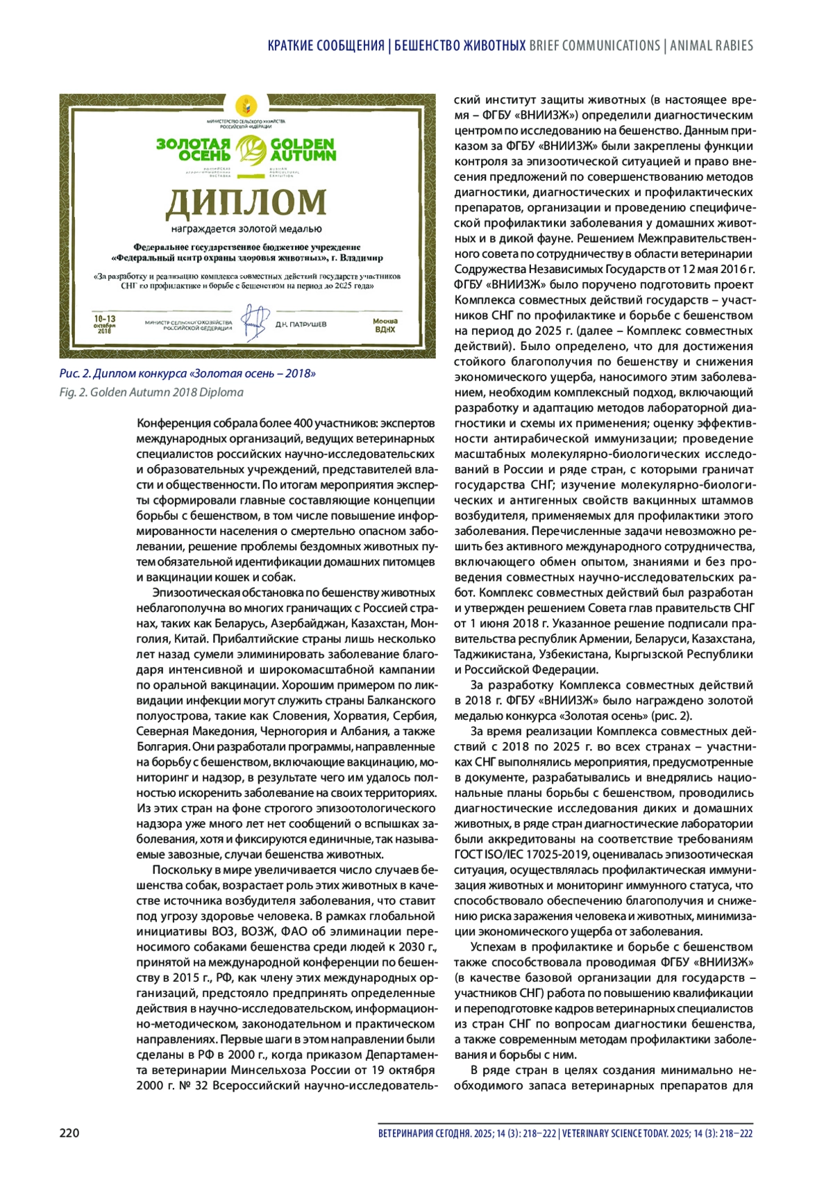 Ключевые фразы: фгбу «вниизж», СТРАНЫ СНГ, бешенство, комплекс совместных действий, концепция «единое здоровье», профилактика