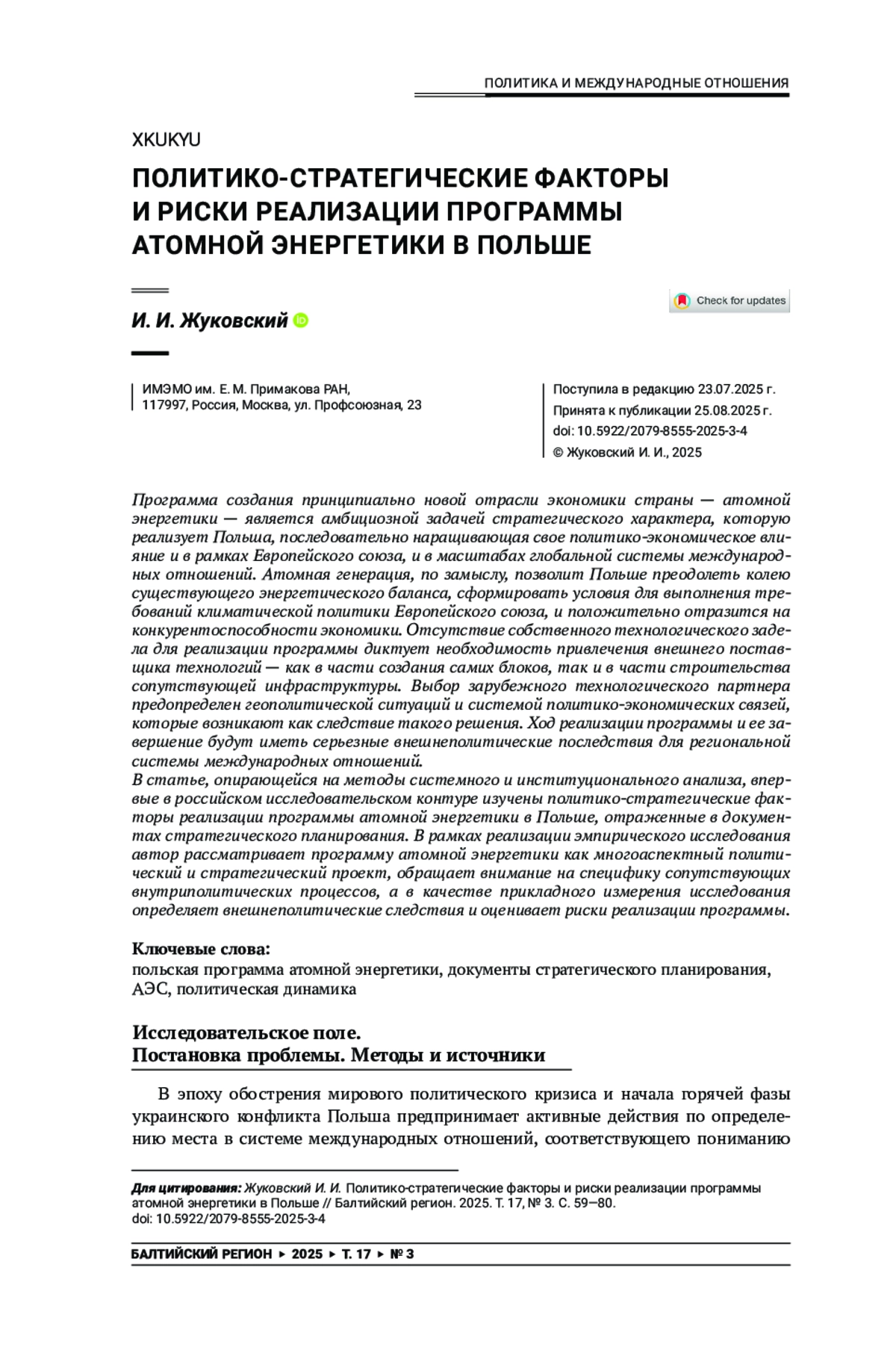 13.Жуковский, И. И. 2024, Некоторые вопросы эволюции модели современных международных отношений в Балтийском регионе, Балтийский регион, т. 16, № 4, с. 145—160, EDN: ZGCUFQ, https://doi.org/10.5922/2079-8555-2024-4-7
