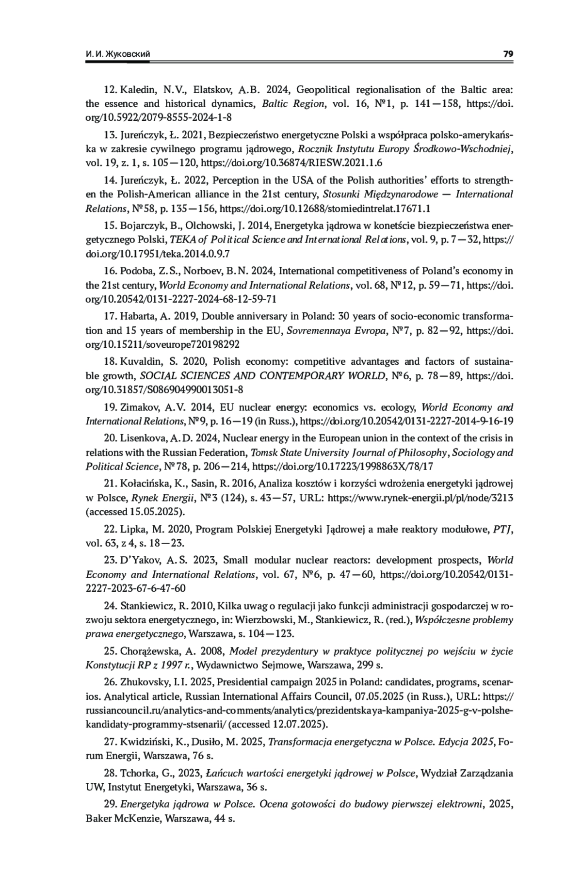 9.Кувалдин, С. А. 2020, Экономика Польши 2023, Приоритеты вишеградских стран в углеводородной и атомной энергетике, Научно-аналитический вестник Института Европы РАН, № 2, с. 64—72, EDN: OSRBJA, https://doi.org/10.15211/vestnikieran220236472