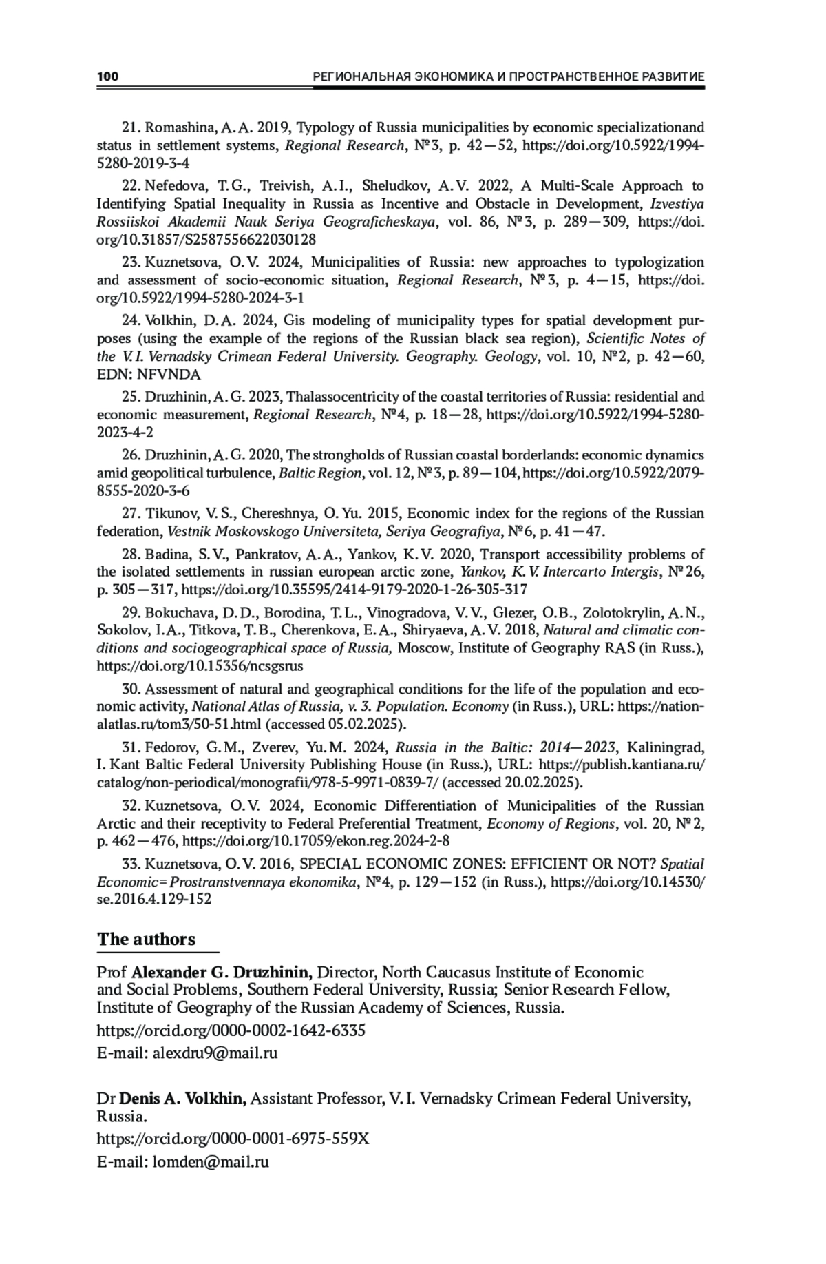 25.Дружинин, А. Г. 2023, Талассоцентрированность приморских территорий России: селитебное и хозяйственное измерение, Региональные исследования, № 4, с. 18—28, EDN: EIHUJD, https://doi.org/10.5922/1994-5280-2023-4-2