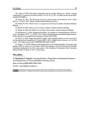 12. Babayev, A. 2013, Democracy promotion between the “political” and the “developmental” approach: US and German policies towards Belarus, Democratization, vol. 21, No 5, p. 937—957,