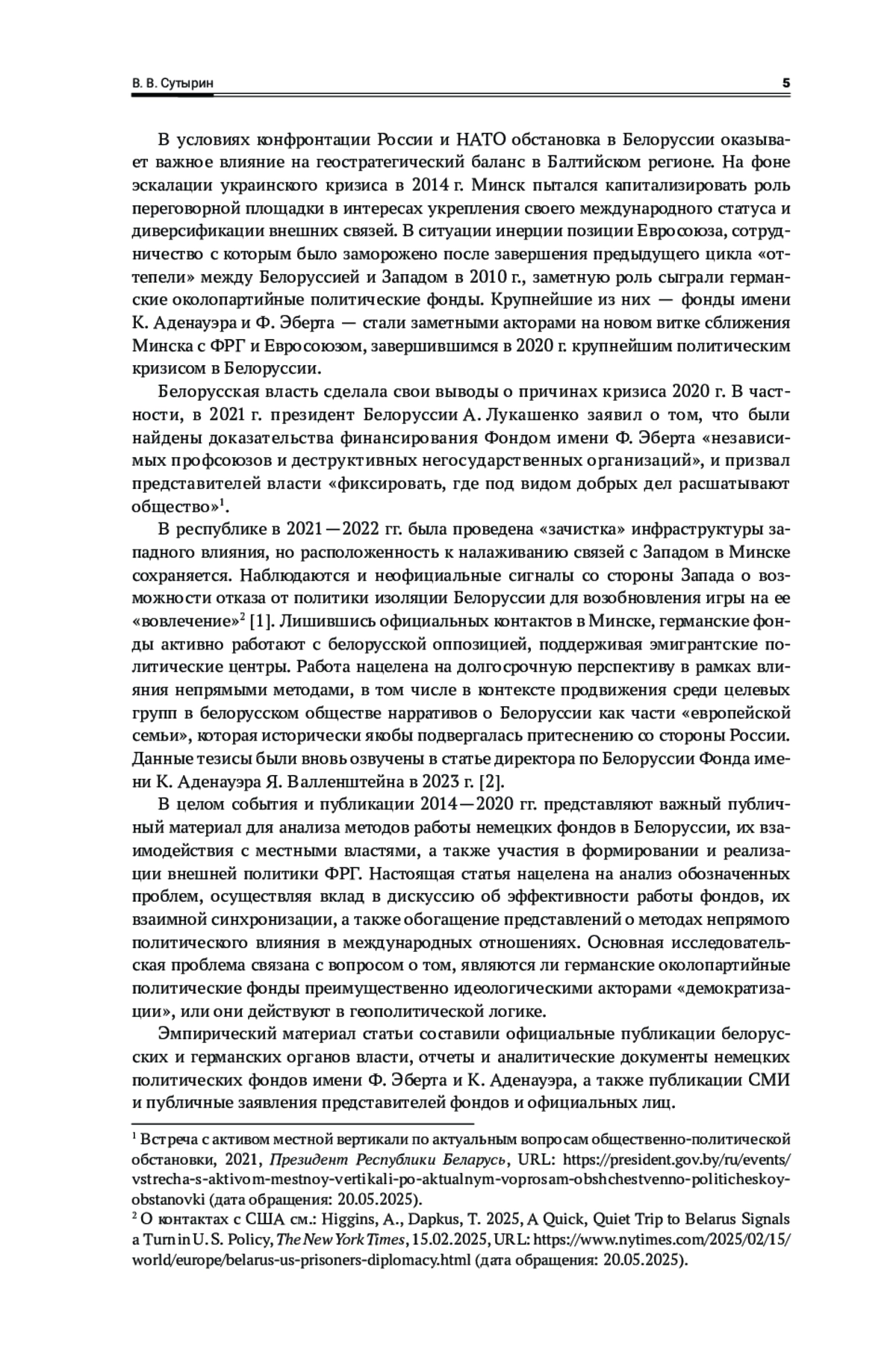6. Сутырин, В. В. 2022, Финансы для либерального порядка. Cравнительный анализ международной деятельности политических фондов ФРГ и филантропических фондов США, Международные процессы, т. 20, No 3, с. 55—79, EDN: DIIOHV, https://doi.org/10.17994/