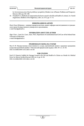 Результаты. Анализ особенностей наступления ответственности и обобщение судебной практики направлено на единообразное понимание правовых категорий, которые позволили бы суду не только возлагать ответственность на медицинских работников, но и давали бы ориентиры для освобождения их от имущественной ответственности и реализовывали принцип справедливого рассмотрения такой категории дела.