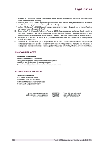 10. Договорное право (общая часть): постатейный комментарий к статьям 420-453 Гражданского кодекса Российской Федерации / А. К. Байрамкулов, О. А. Беляева, А. А. Громов и др.; отв. ред. А. Г. Карапетов. М.: М-Логос, 2020. EDN: KPAQCF