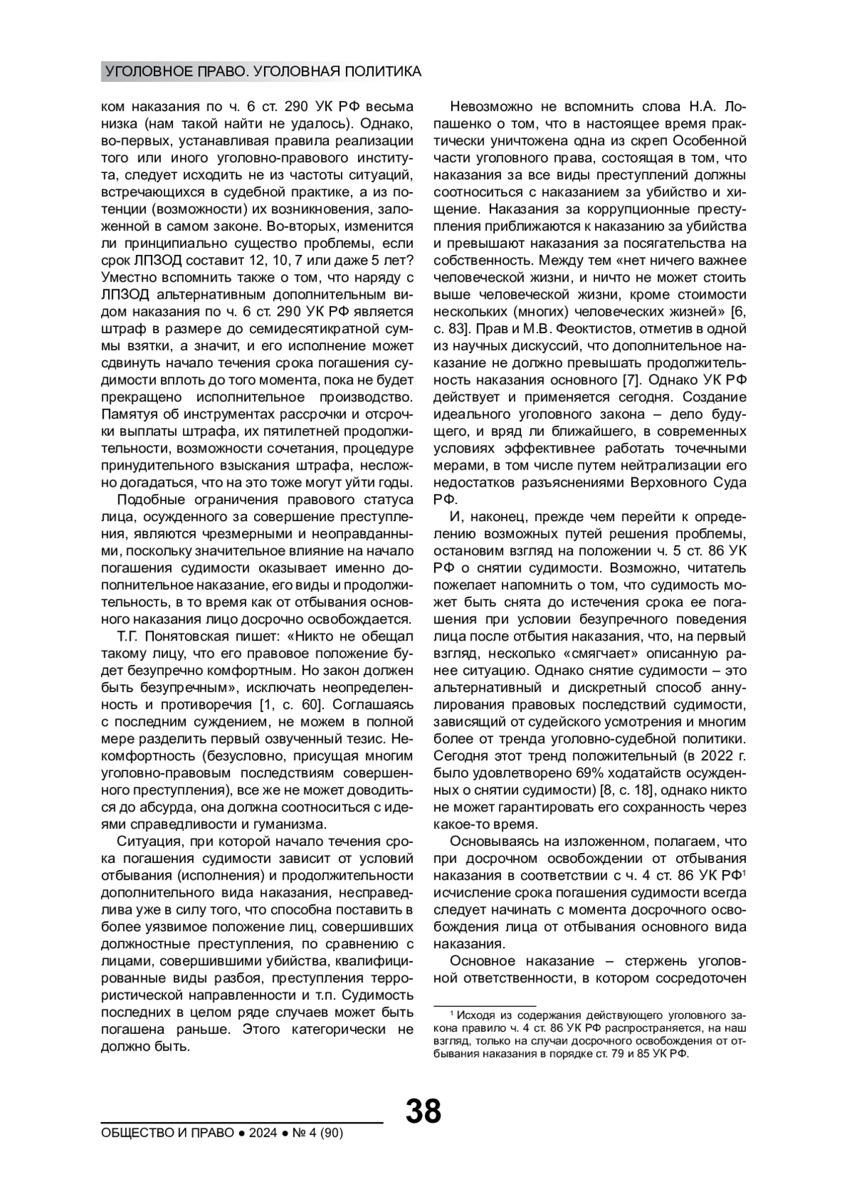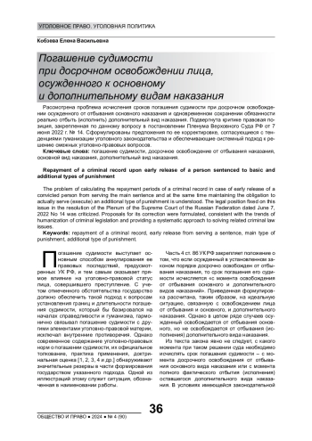 1. Понятовская Т.Г. Порядок исчисления срока погашения судимости - неясность законодательной позиции // Научный портал МВД России. 2022. № 1. EDN: HVXHMQ