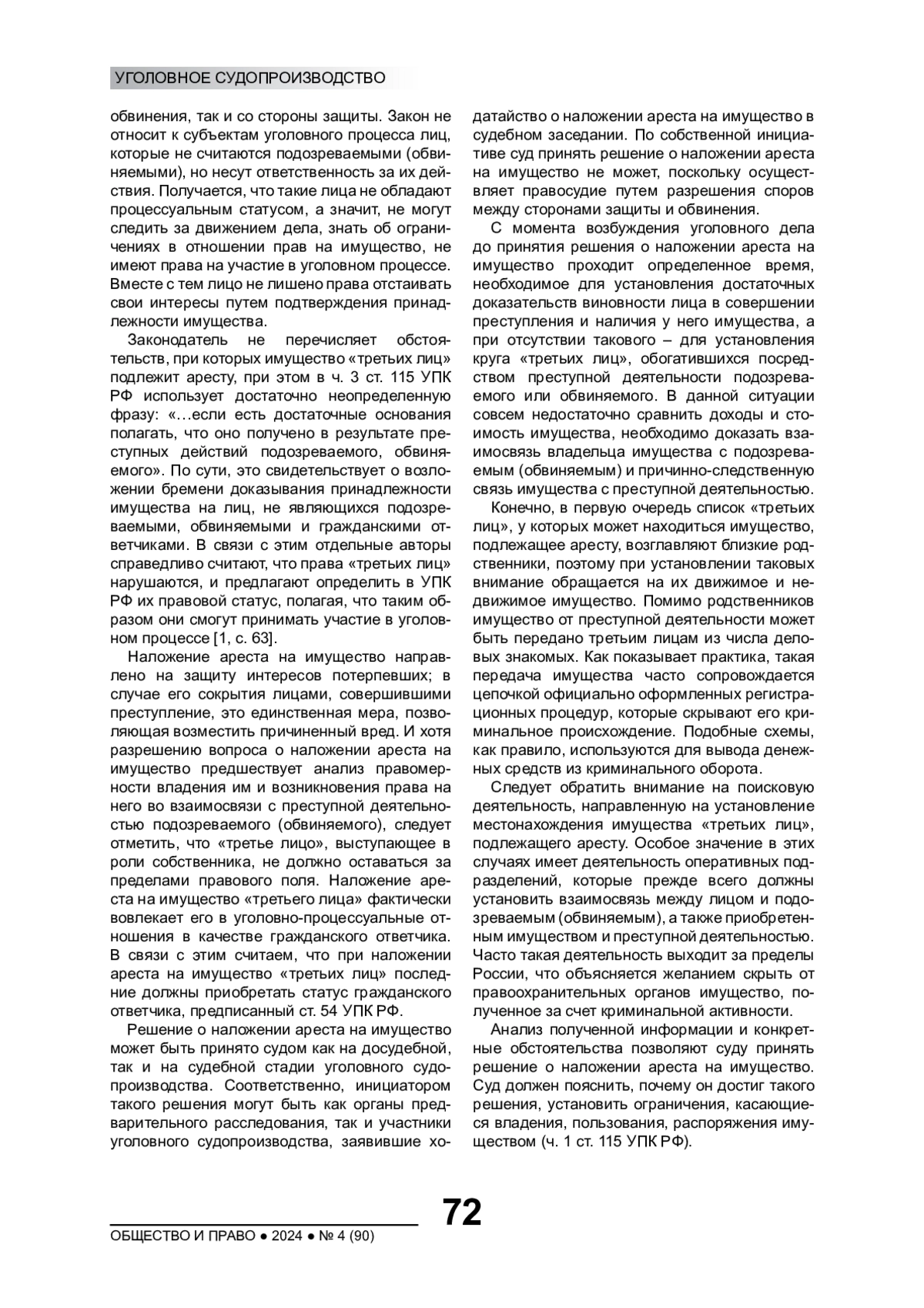 1. Зиновьев К.О. Правовые механизмы обеспечения процессуальных гарантий третьих лиц при наложении ареста на имущество // Юридическая наука. 2019. № 5. EDN: QEGMDO