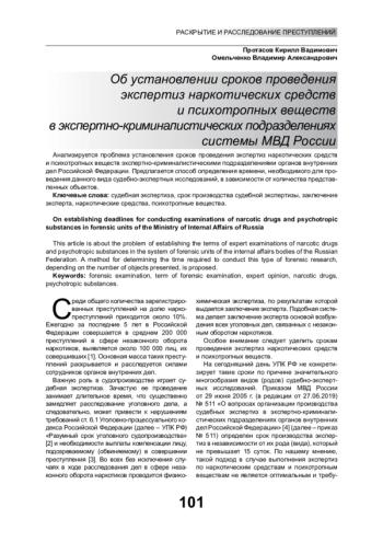 Анализируется проблема установления сроков проведения экспертиз наркотических средств и психотропных веществ экспертно-криминалистическими подразделениями органов внутренних дел Российской Федерации. Предлагается способ определения времени, необходимого для проведения данного вида судебно-экспертных исследований, в зависимости от количества представленных объектов