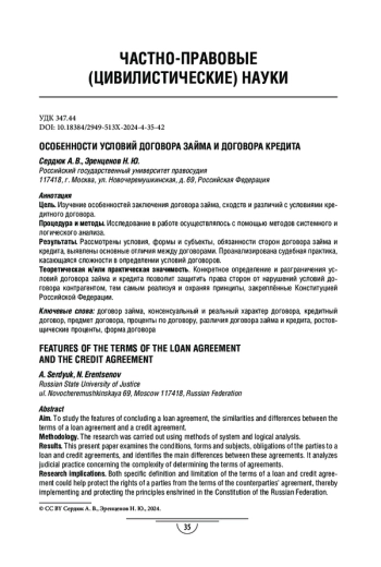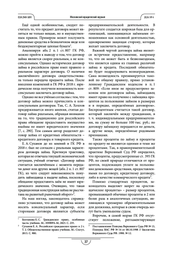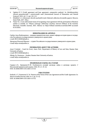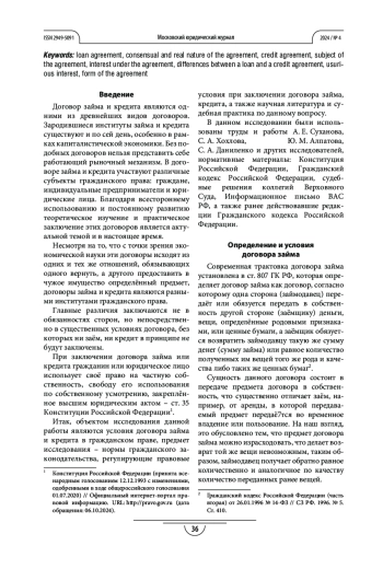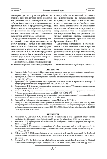 6. Угольнов Д. В. Кредитный договор и договор займа: сравнительный анализ // International Journal of Humanities and Natural Sciences. 2023. Vol. 1-3. C. 110-112/