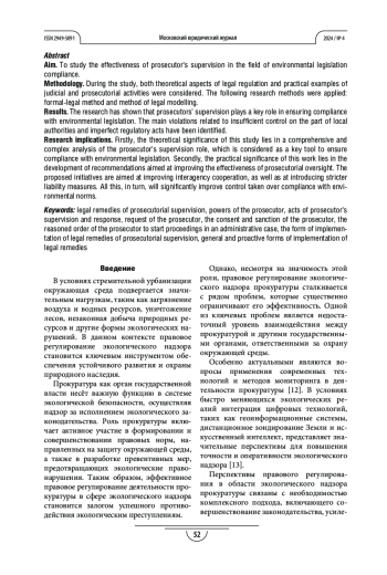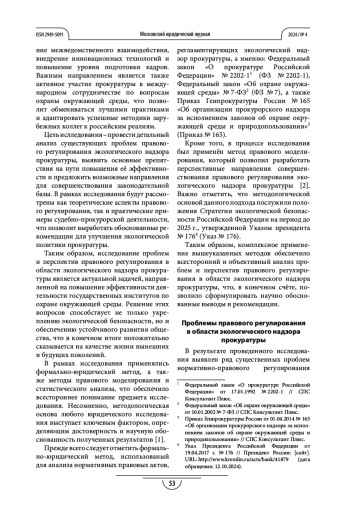 Цель. Исследование эффективности прокурорского надзора в области соблюдения экологического законодательства.