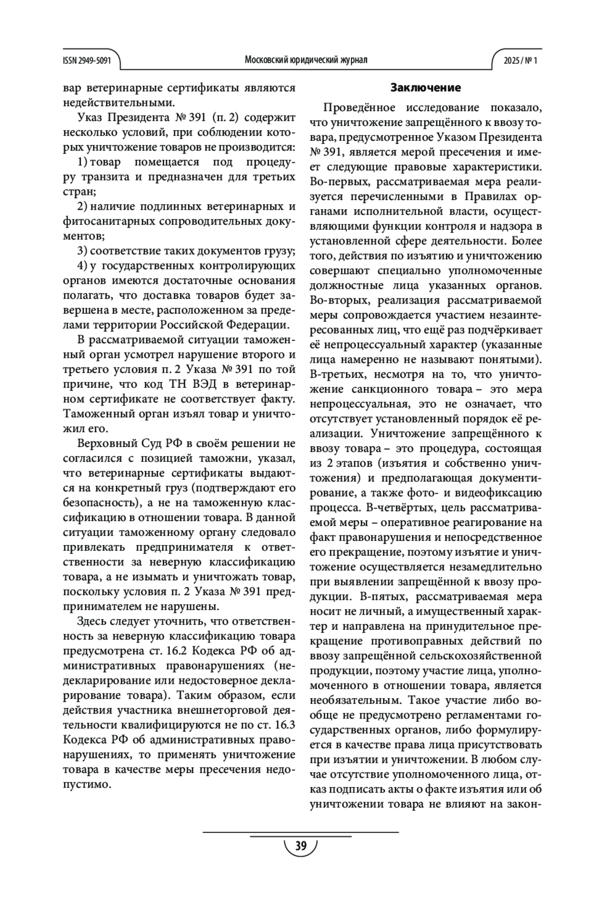 5. Зубков А. С. О понятии и сущности мер административного пресечения // Право и государственность. 2024. № 4. С. 49-53. https://doi.org/10.70569/2949-5725.2024.5.4.008