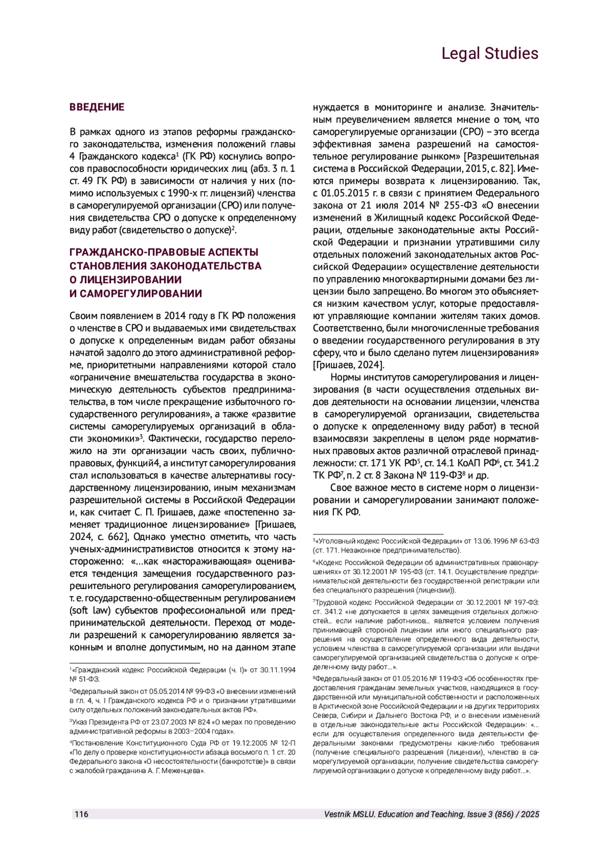 4. Лескова Ю. Г. О роли и значении СРО в сфере строительства в реализации и соблюдении принципа стабильности гражданского оборота // Законы России: опыт, анализ, практика. 2019. № 6. С. 13-17. EDN: PSPBAF