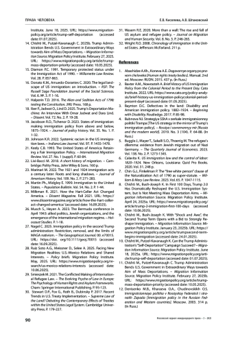 2. Бубнова Н.И. 2019. Стратегия США в зеркале иммиграционной политики Трампа. - Россия и современный мир. № 3 (104). С. 64-88.