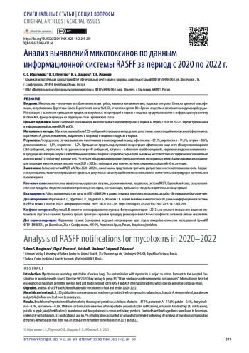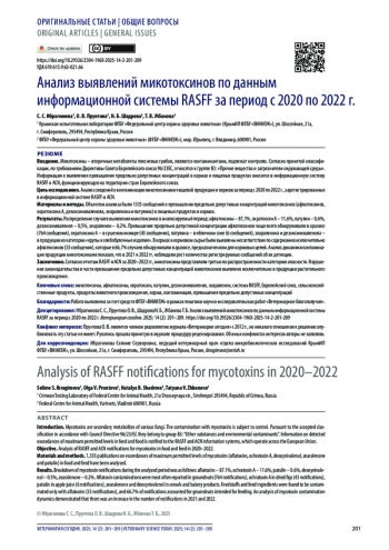 Заключение. Согласно отчетам RASFF и ACN за 2020–2022 гг., микотоксины представляли третью по распространенности категорию опасности. Нарушение законодательства в части превышения предельно допустимых концентраций микотоксинов выявлено исключительно в продукции растительного происхождения.