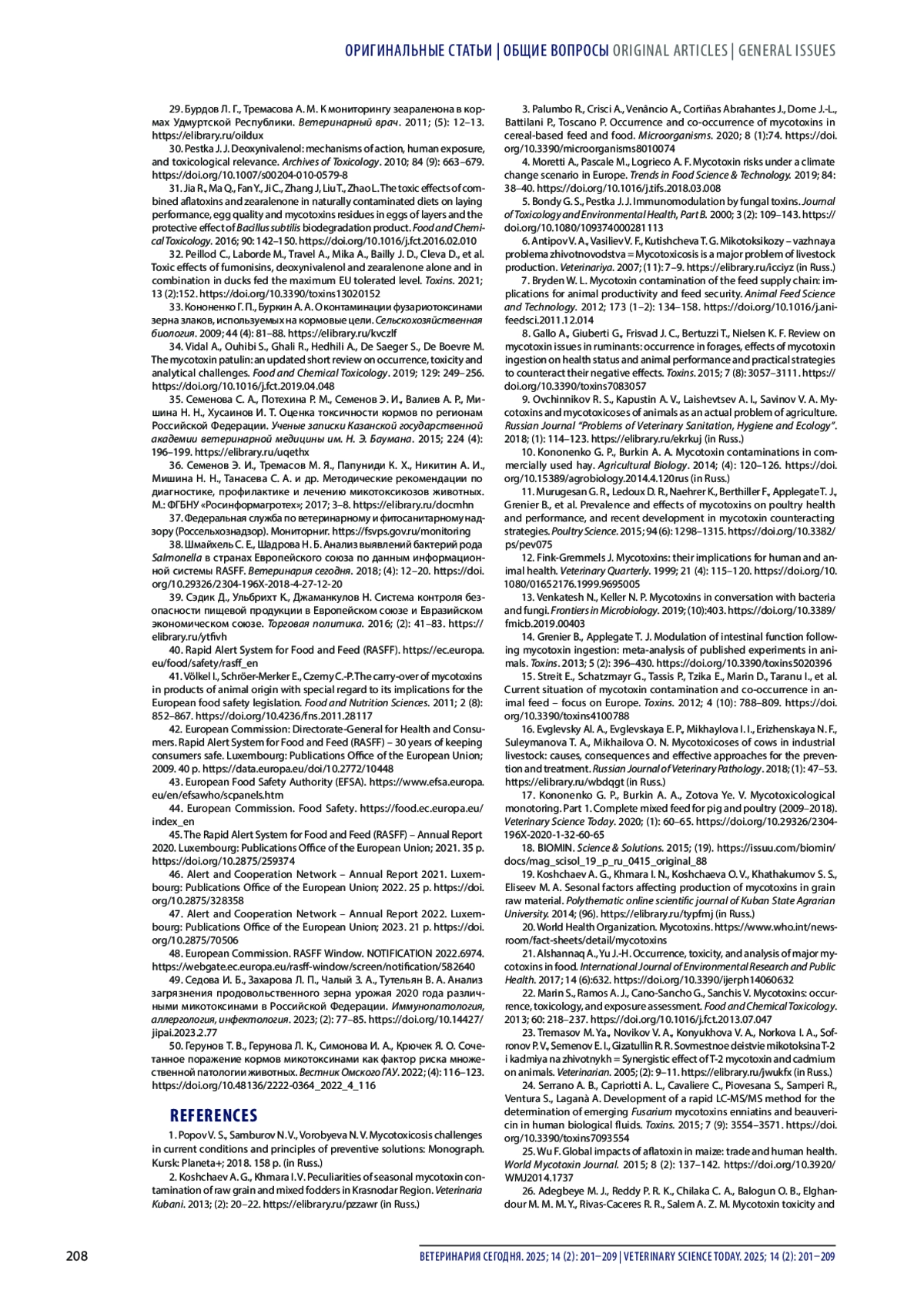 1. Попов В. С., Самбуров Н. В., Воробьева Н. В. Проблемы микотоксикозов в современных условиях и принципы профилактических решений: монография. Курск: Планета+; 2018. 158 с.