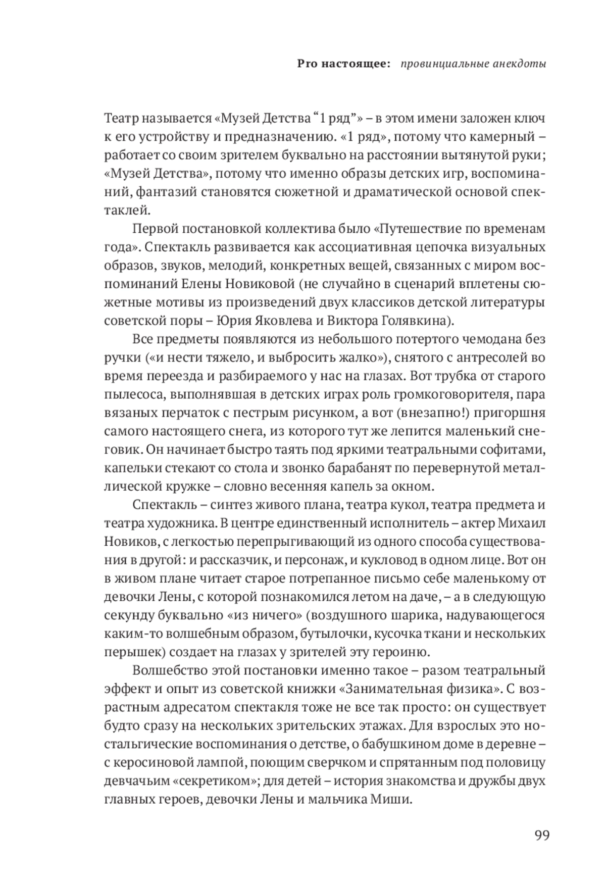 Театр называется «Музей Детства “1 ряд”» – в этом имени заложен ключ к его устройству и предназначению. «1 ряд», потому что камерный – работает со своим зрителем буквально на расстоянии вытянутой руки; «Музей Детства», потому что именно образы детских игр, воспоминаний, фантазий становятся сюжетной и драматической основой спектаклей.
