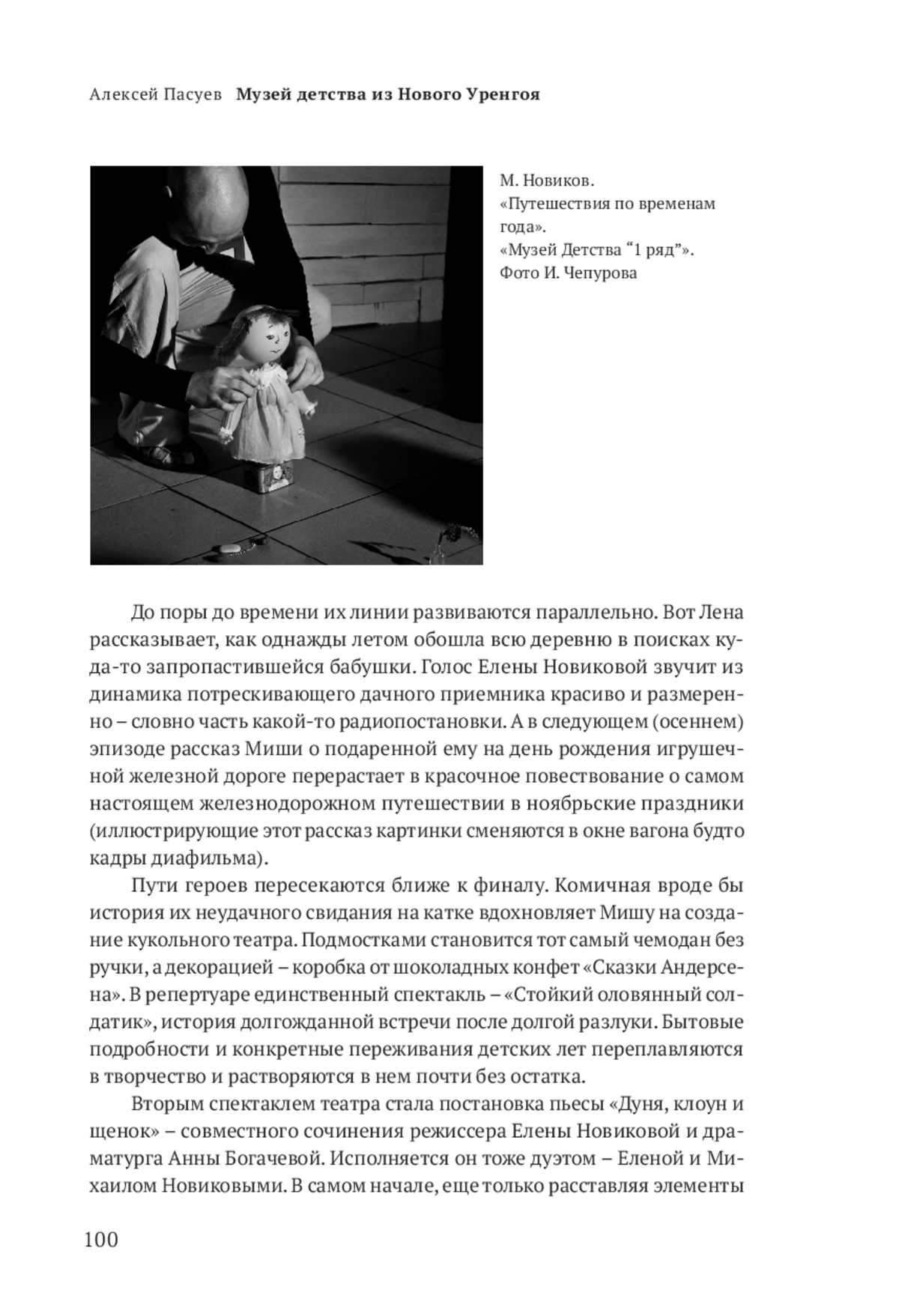 Уже несколько лет на фестиваль «Рождественский парад» в Санкт-Петербург приезжает маленький театр из Нового Уренгоя. Каждый раз он увозит с собой значимые фестивальные награды. В его команде всего два человека – Елена и Михаил Новиковы. Елена – драматург, режиссер и сценограф этого коллектива, Михаил – актер, воплощающий ее замыслы на сцене.