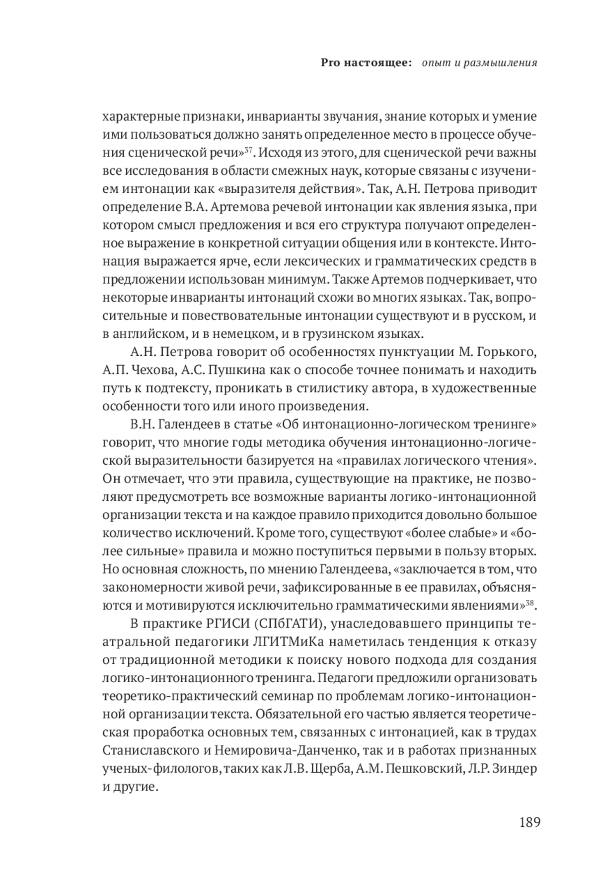 21. Галендеев В.Н. Об интонационно-логическом тренинге // Сценическая речь: прошлое и настоящее. Избр. труды каф. сцен. речи С.-Петерб. гос. акад. театр. искусства / Ред.- сост. Ю.А. Васильев. СПб.: СПбГАТИ, 2009. С. 175-183. С. 176.