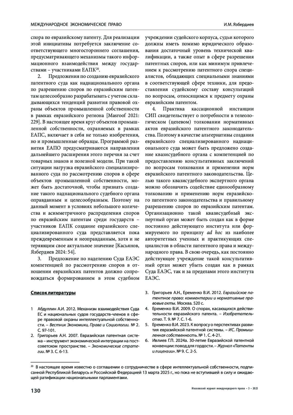 6. Ивлиев Г.П. 2024а. 30-летие Евразийской патентной конвенции: повод для гордости. - Журнал «Патенты и лицензии». № 9. С. 2-5.