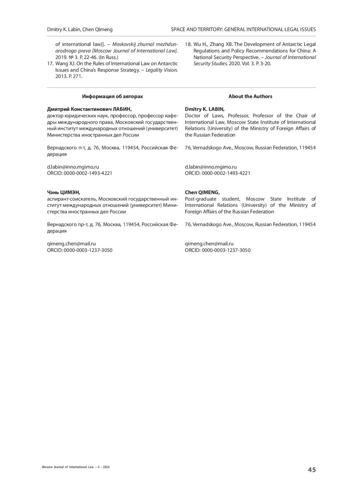 ВВЕДЕНИЕ. Антарктический регион является уникальным с точки зрения организации эффективного управления одновременно большим числом государств. Для этой цели в 1959 г. был заключен Договор об Антарктике, который позволил предотвратить возникновение конфликтов. Тем не менее не так давно стала активна обсуждаться концепция территориального деления данного региона. Китай, являясь одной из наиболее быстроразвивающихся с экономической точки зрения государств, что влечет за собой заинтересованность в усилении влияния в Антарктическом регионе, также активно участвует в разрешении вопросов, связанных с правовым регулированием Антарктики. Цель статьи – определить позицию Китая в отношении деятельности в Антарктическом регионе в целом, а также, с точки зрения установления государственного суверенитета над территориями Антарктики.