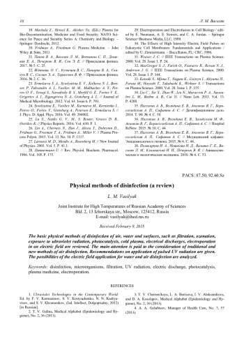 L. M. Vasilyak Physical methods of disinfection (a review) 5