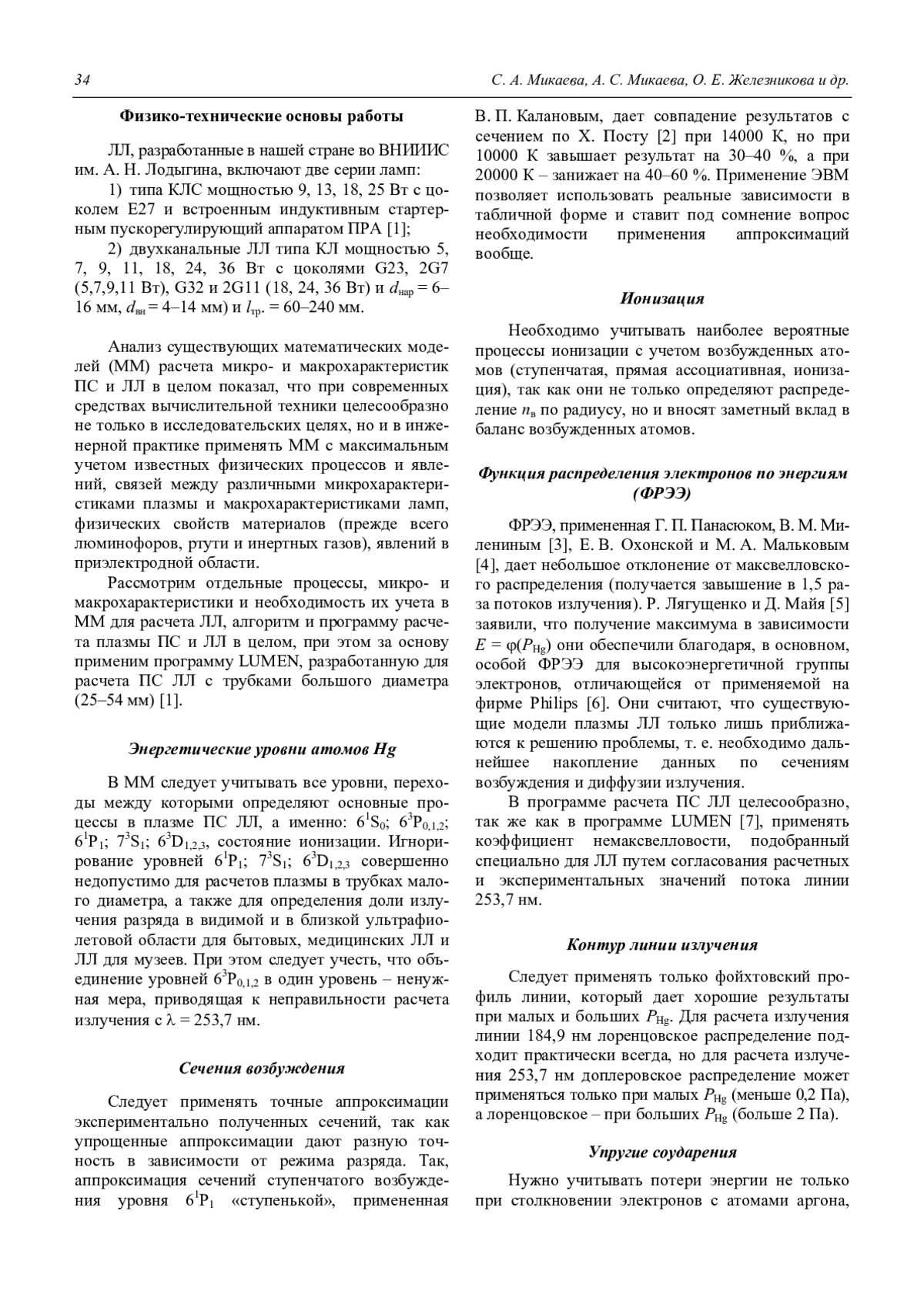 S. A. Mikaeva, A. S. Mikaeva, O. E. Zheleznikova, V. V. Murav’ev, and M. I. Boychuk Main processes and characteristics in the mathematical model for a positive column of fluorescent lamps 33