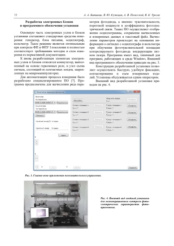 A. A. Batsheva, V. Y. Kuznetsov, A. V. Polesskiy, and V. K. Tresak Universal test-bench for measure-ments of the photoelectric characteristics of photodetectors 68