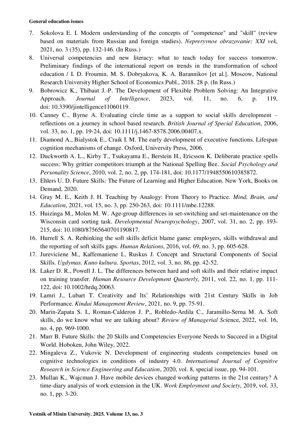 20. Marin-Zapata S. I., Roman-Calderon J. P., Robledo-Ardila C., Jaramillo-Serna M. A. Soft skills, do we know what we are talking about? // Review of Managerial Science. 2022. Vol. 16, no. 4. Pp. 969-1000.