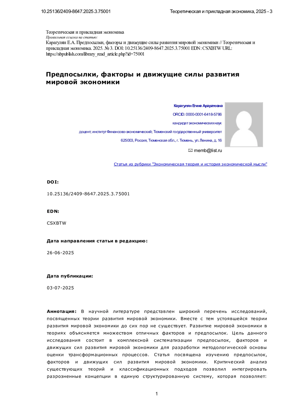 16. Карагулян, Е. А. Факторы и принципы трансформации мировой экономики / Е. А. Карагулян // Экономические отношения. - 2024. - Т. 14, № 4. - С. 677-700. - -. DOI: 10.18334/eo.14.4.122381 EDN: SKKWNE