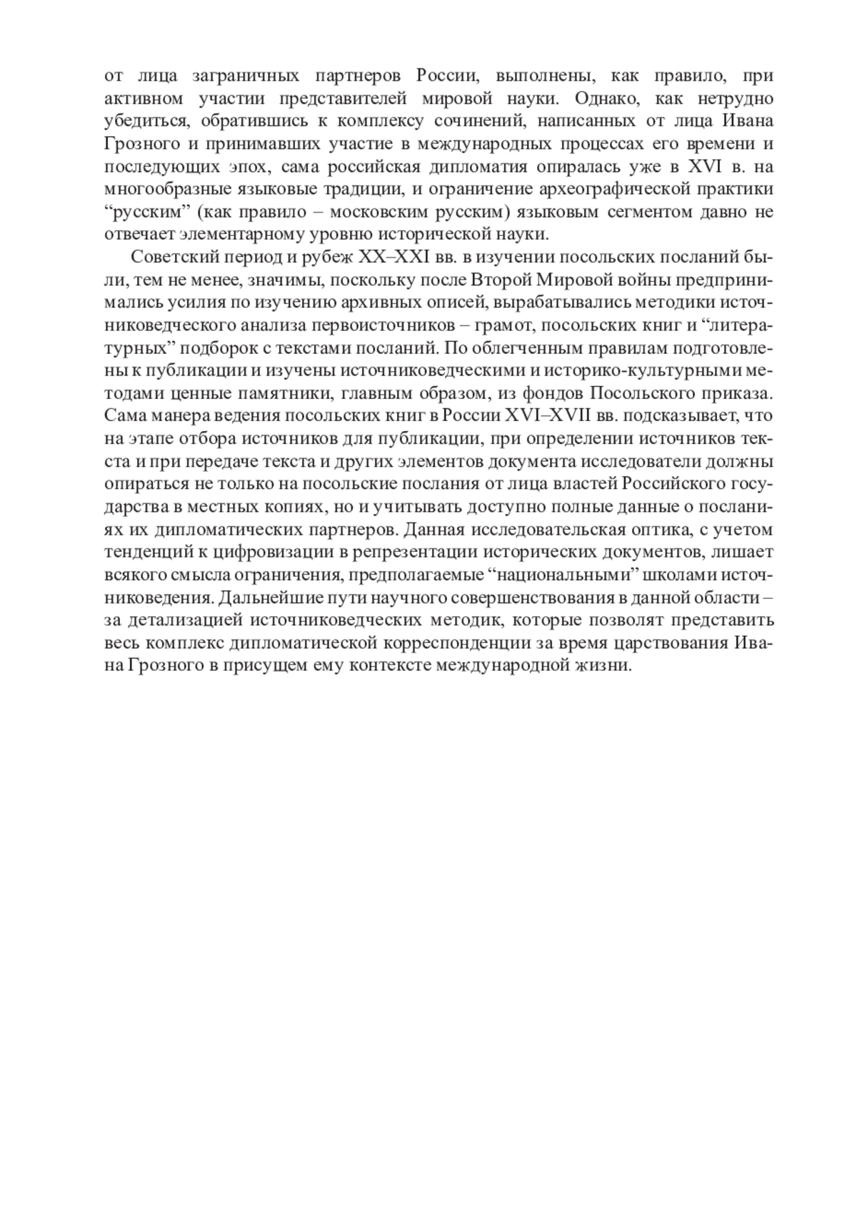 Наше исследование основано на проекте публикации дипломатической переписки России XVI в. и не призвано решать проблемы, выходящие за пределы данного проекта, поэтому необходимо внести оговорки, без которых не будут понятны дальнейшие наблюдения за археографическими опытами, восходящими к эпохе Просвещения и вплоть до наших дней значимыми для исторической науки и других отраслей гуманитарного знания: