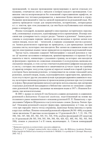 6. Panaitescu Р Р. Catalogul manuscriselor slavo-române şi slave din Biblioteca Academiei Române. Ediţie îngrijită de Dalila-Lucia Aramă şi revizuită de G. Mihăilă. Сu о prefaţă de G. Ştrempel. Bucureşti, 2003. Vol. 2.