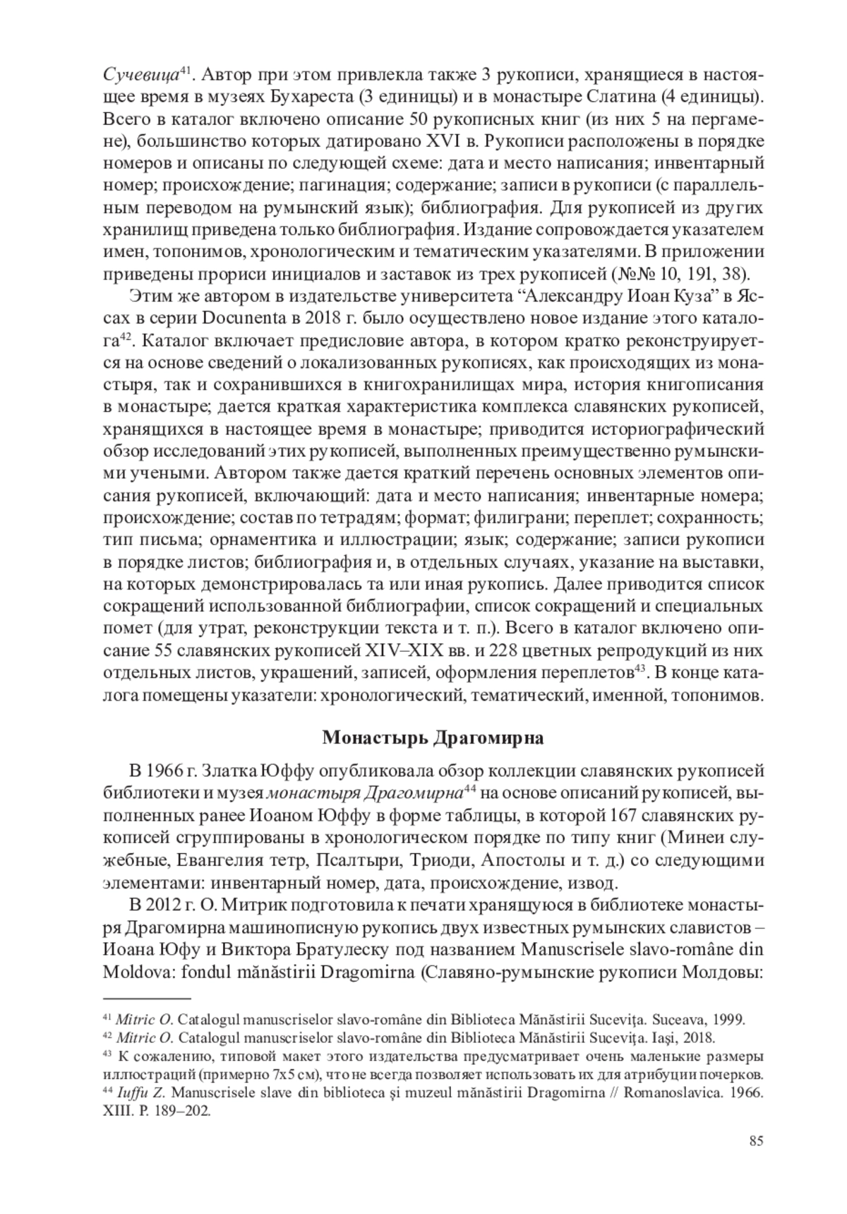 34. Mitric O. Catalogul manuscriselor slavo-române din Biblioteca Mănăstirii Suceviţa. Iaşi, 2018.
