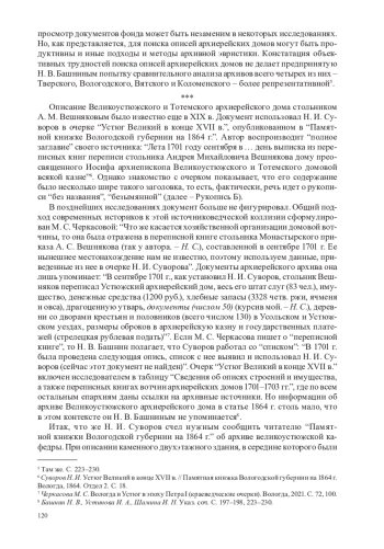 12. Черкасова М.С. Вологда и Устюг в эпоху Петра I (краеведческие очерки). Вологда, 2021. С. 72,100. EDN: CDVXTO