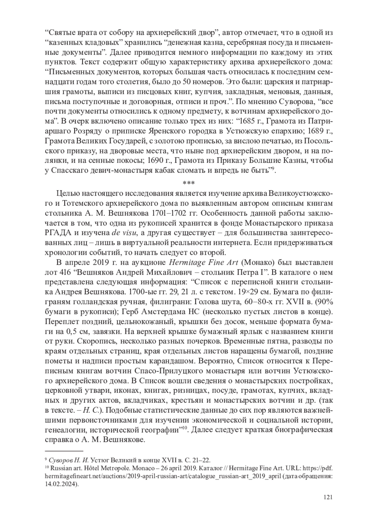 18. Соколова Н.В. Великоустюжский и Тотемский архиерейский дом в начале XVIII века (историографический и источниковедческий аспекты) // Вестник Пермского университета. История. 2024. № 2 (65). С. 48-59. EDN: DRYTVM
