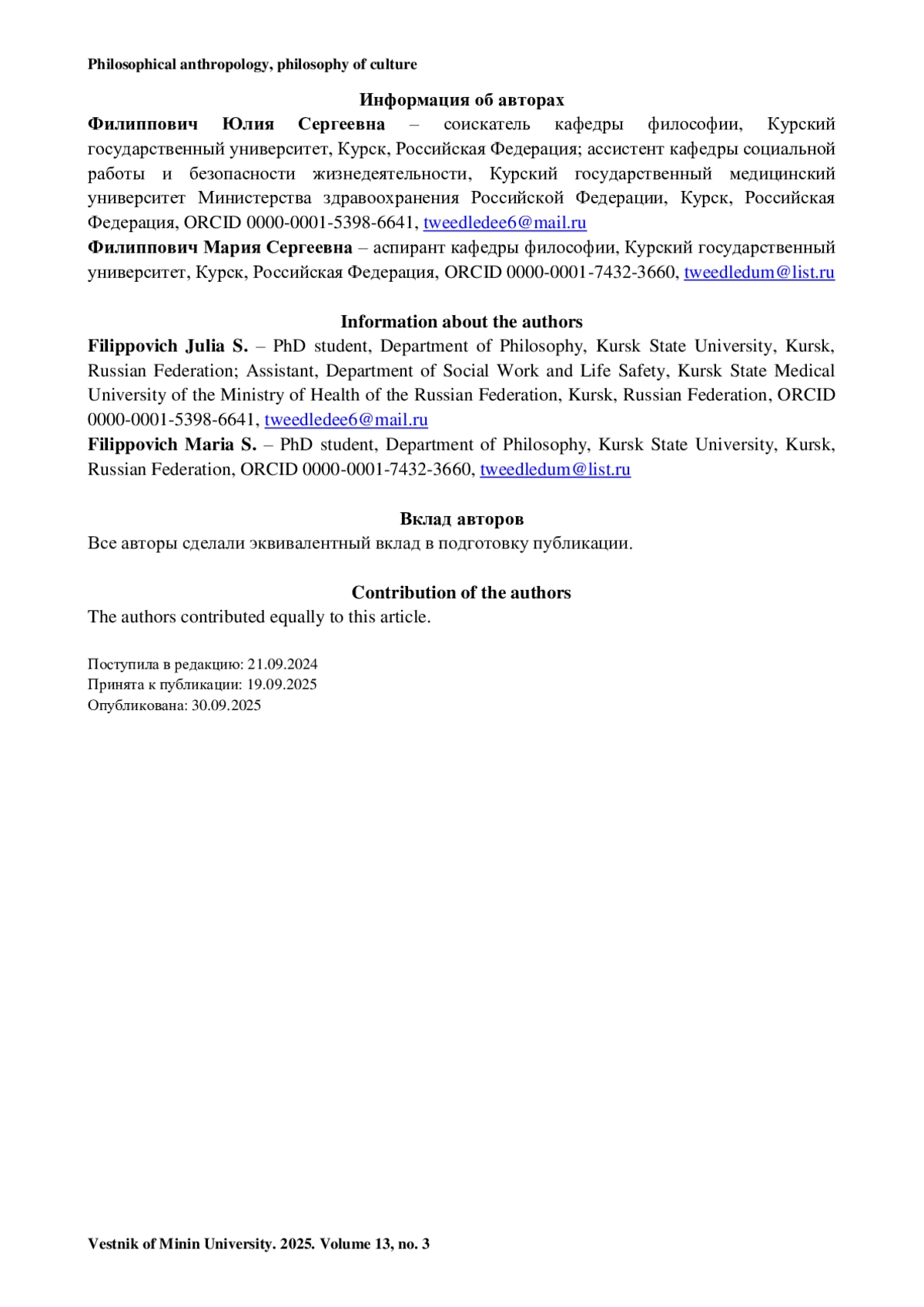 10. Волохова Н. В., Филиппович Ю. С. «Усталость» как условие индифферентности любви: выводы постмодерна // Известия Юго-Западного государственного университета. Серия: Экономика. Социология. Менеджмент. 2023. Т. 13, № 3. С. 270-279. https://doi.org/10.21869/2223-1552-2023-13-3-270-279. EDN HHSBYC.