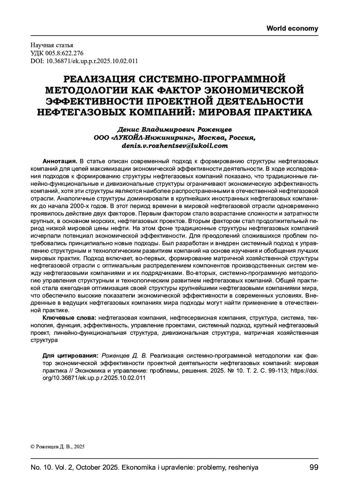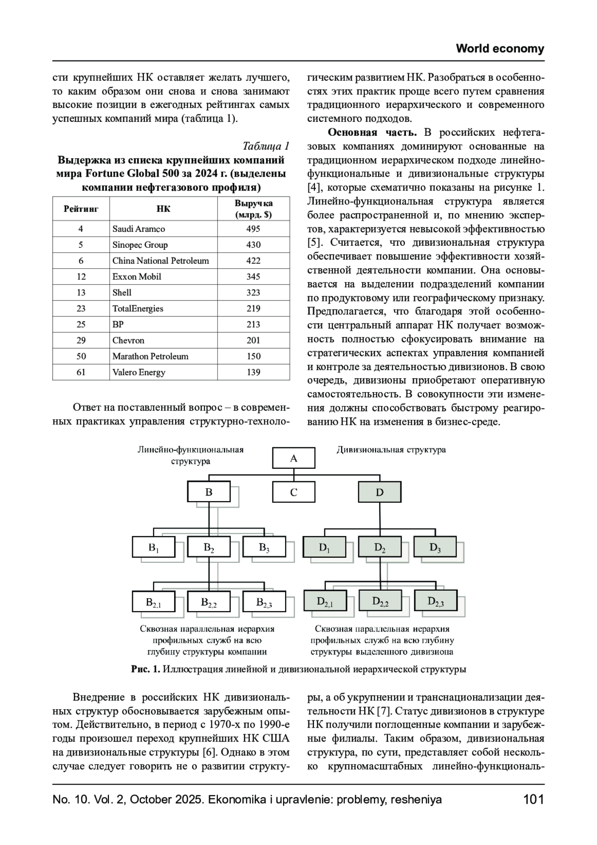В статье описан современный подход к формированию структуры нефтегазовых компаний для целей максимизации экономической эффективности деятельности. В ходе исследования подходов к формированию структуры нефтегазовых компаний показано, что традиционные линейно-функциональные и дивизиональные структуры ограничивают экономическую эффективность компаний, хотя эти структуры являются наиболее распространенными в отечественной нефтегазовой отрасли. Аналогичные структуры доминировали в крупнейших иностранных нефтегазовых компаниях до начала 2000-х годов. В этот период времени в мировой нефтегазовой отрасли одновременно проявилось действие двух факторов. Первым фактором стало возрастание сложности и затратности крупных, в основном морских, нефтегазовых проектов. Вторым фактором стал продолжительный период низкой мировой цены нефти. На этом фоне традиционные структуры нефтегазовых компаний исчерпали потенциал экономической эффективности. Для преодолений сложившихся проблем потребовались принципиально новые подходы. Был разработан и внедрен системный подход к управлению структурным и технологическим развитием компаний на основе изучения и обобщения лучших мировых практик. Подход включает, во-первых, формирование матричной хозяйственной структуры нефтегазовой отрасли с оптимальным распределением компонентов производственных систем между нефтегазовыми компаниями и их подрядчиками. Во-вторых, системно-программную методологию управления структурным и технологическим развитием нефтегазовых компаний. Общей практикой стала ежегодная оптимизация своей структуры крупнейшими нефтегазовыми компаниями мира, что обеспечило высокие показатели экономической эффективности в современных условиях. Внедренные в ведущих нефтегазовых компаниях мира подходы могут найти применение в отечественной практике.
