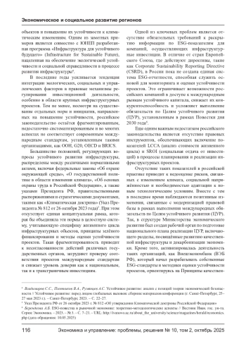 Ключевые фразы: ЦЕЛИ УСТОЙЧИВОГО РАЗВИТИЯ, устойчивая инфраструктура, esg-стандарты, ЗЕЛЕНОЕ ФИНАНСИРОВАНИЕ, российское законодательство, BRICS, oecd, unep, lcca, sroi